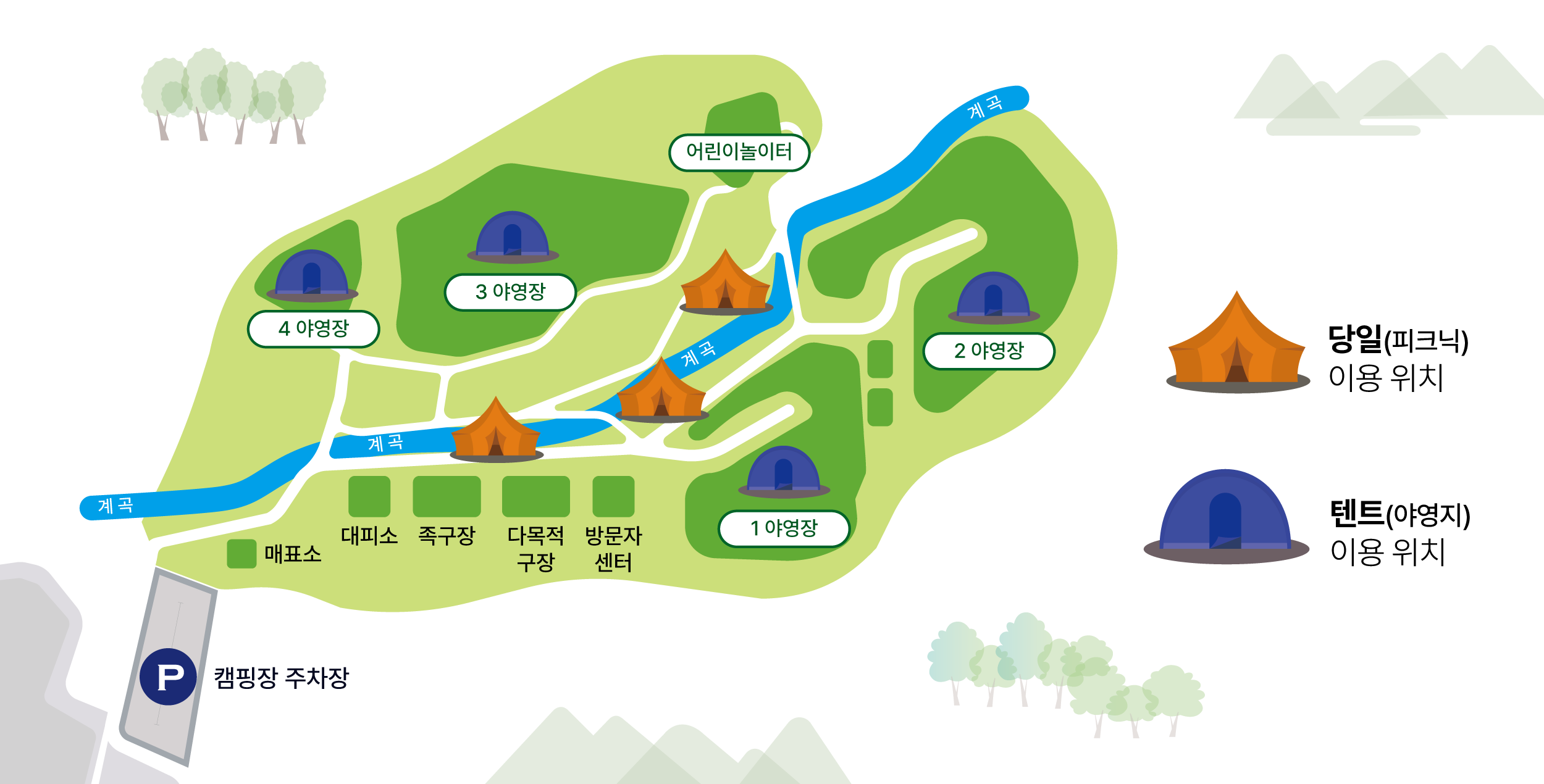 - 텐트/운동장 이용자는 입장료 별도