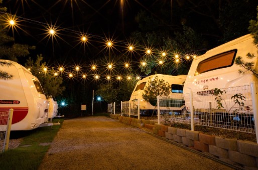 커플이나 친구끼리 방문해도 수영장글램핑 특유의 분위기는 여행의 무드를 확실히 살려줍니다. 반짝이는 물빛과 감성적인 카라반, 자연 풍경이 어우러지면 어디서 사진을 찍어도 분위기가 살아납니다. 낮에는 밝고 생기 있는 느낌이 좋고, 저녁에는 조명이 더해져 한층 로맨틱한 장면이 완성됩니다.