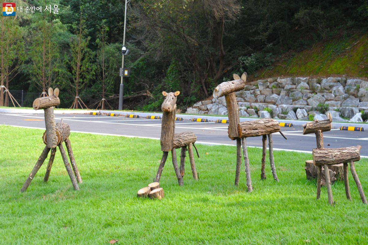 또한 캠핑장 곳곳에 산림부산물로 만든 **목공예 전시(꽃사슴·고라니·멧돼지 등)**가 있어 아이들과 산책하면서 보는 재미가 있다는 점도 특징이에요.